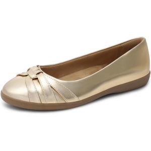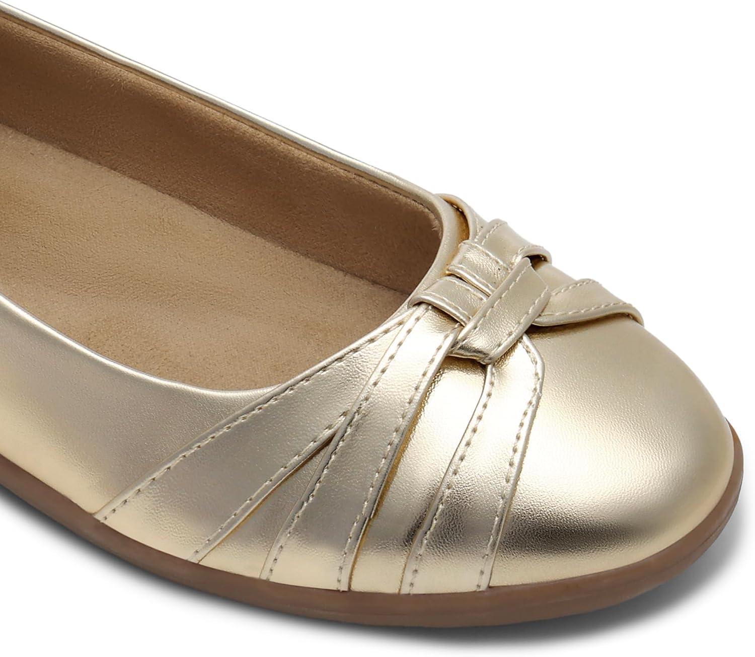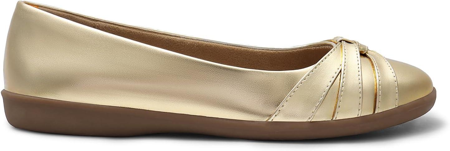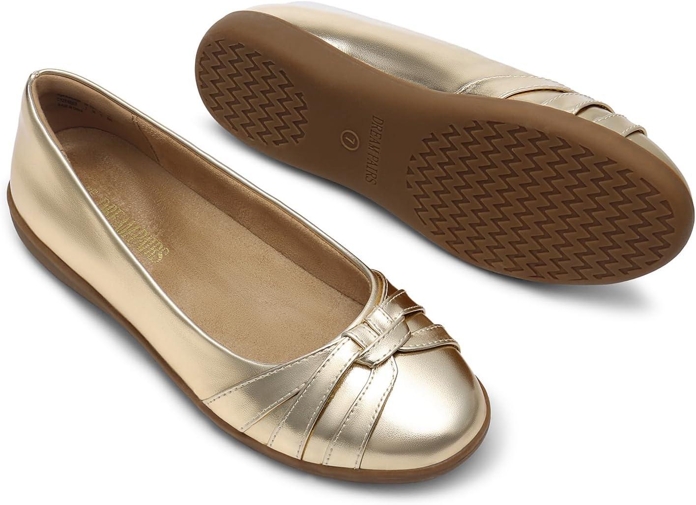 DREAM PAIRS Women’s Ballet Flats, Comfortable Round Toe Slip on Dressy Work Office Shoes with Arch Support(Gold)