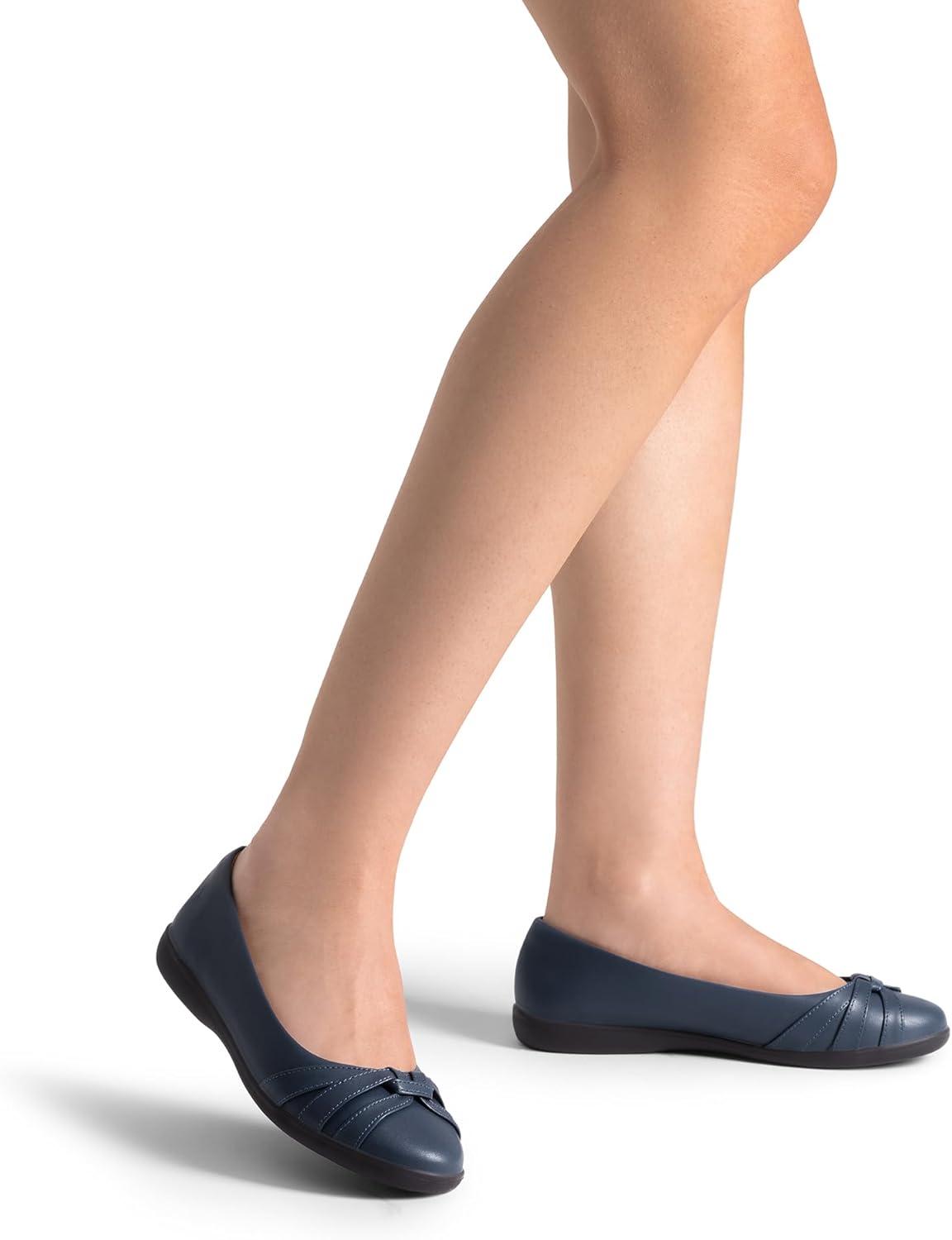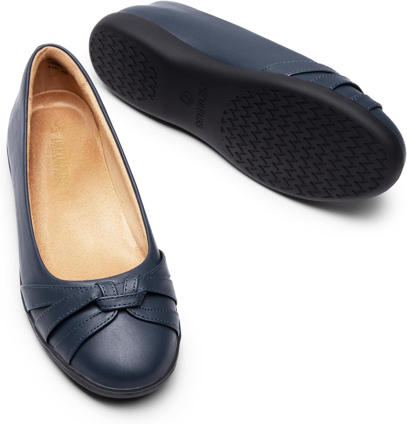DREAM PAIRS Women’s Ballet Flats, Comfortable Round Toe Slip on Dressy Work Office Shoes with Arch Support(Navy)