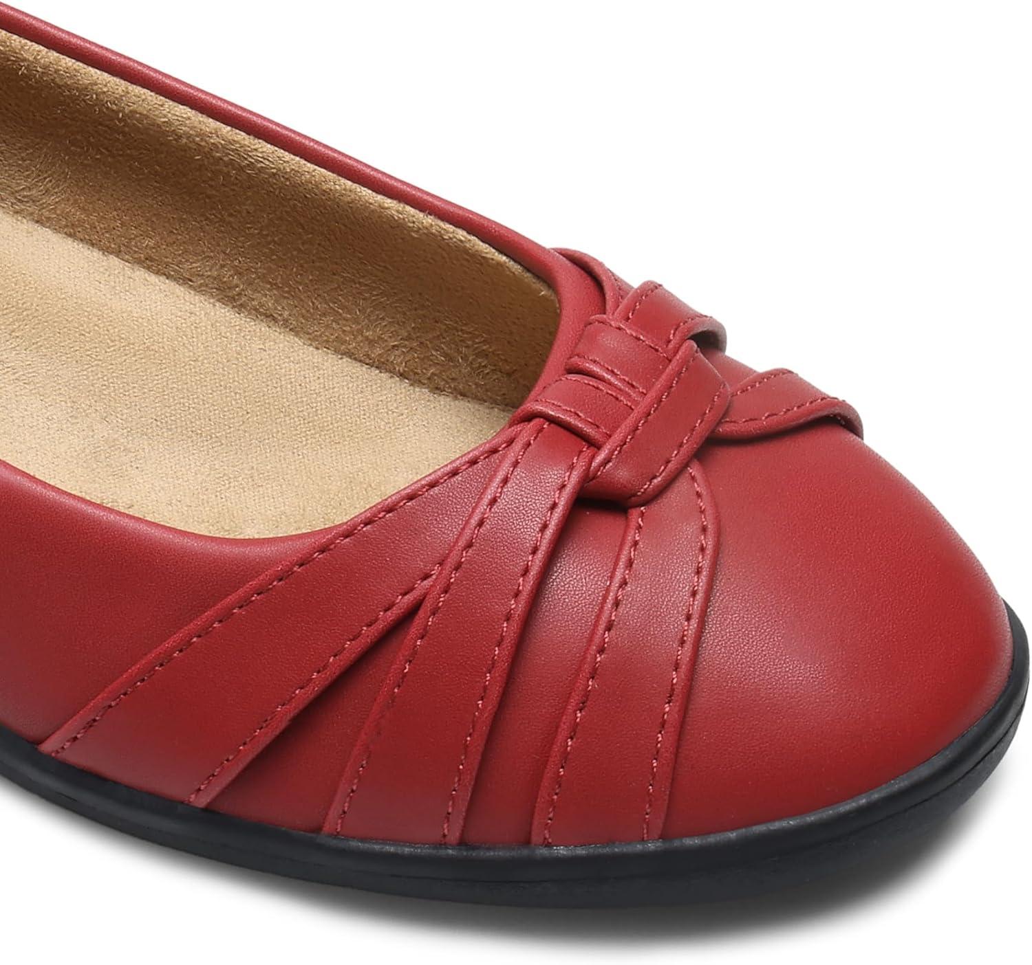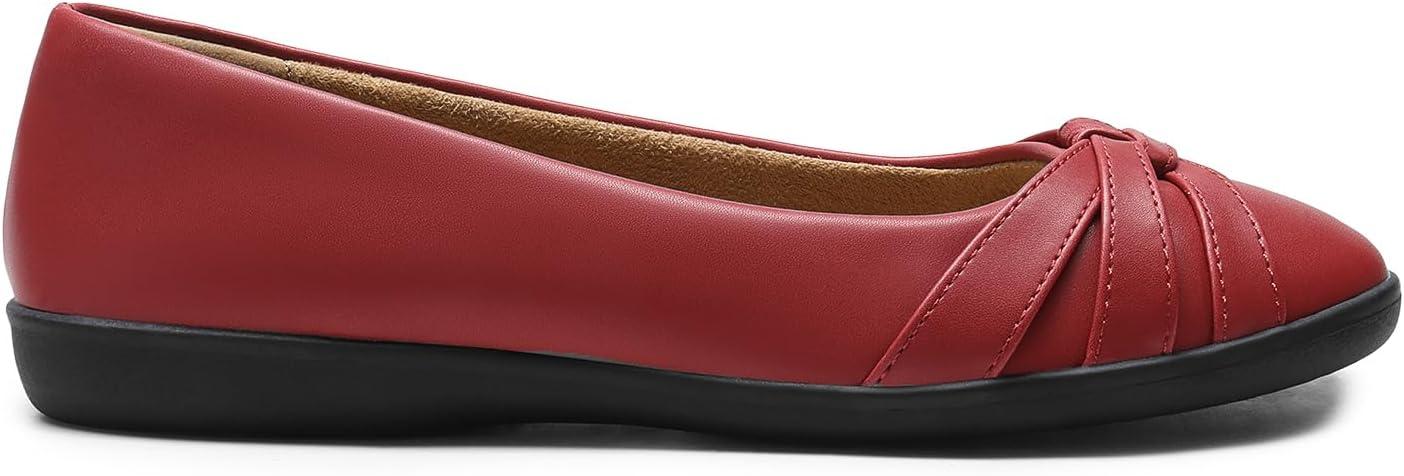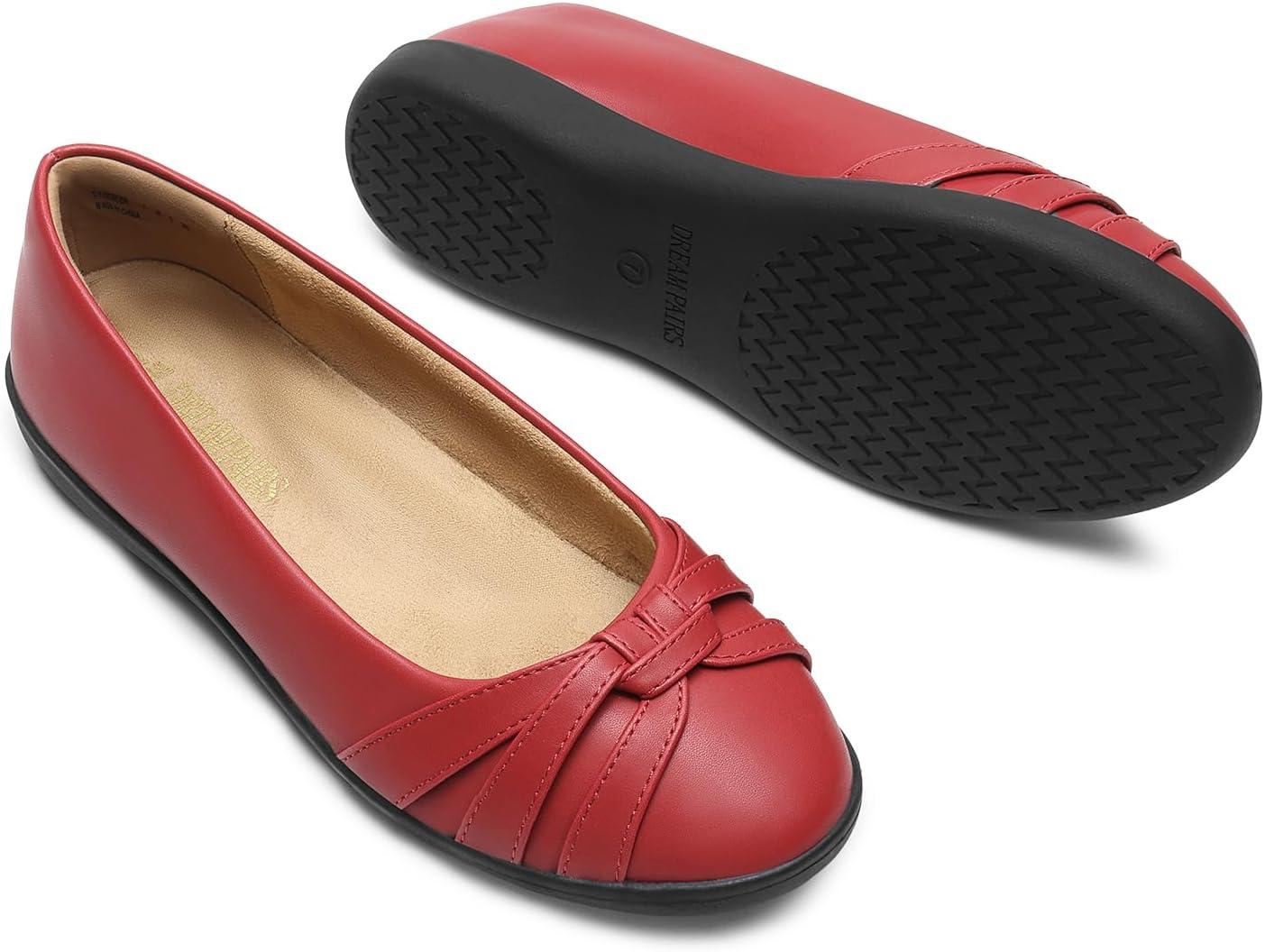 DREAM PAIRS Women’s Ballet Flats, Comfortable Round Toe Slip on Dressy Work Office Shoes with Arch Support(Red)